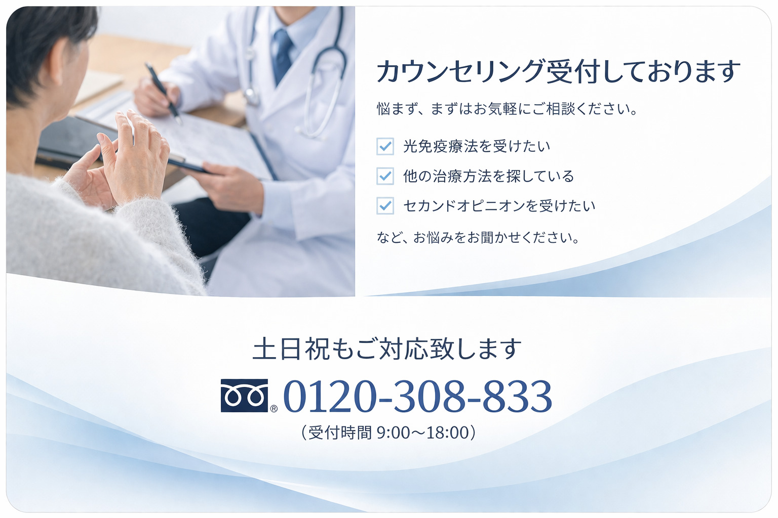 当院では自費診療としての光免疫療法を提供しており、標準治療が難しい患者様にも治療の選択肢をご提案しています。